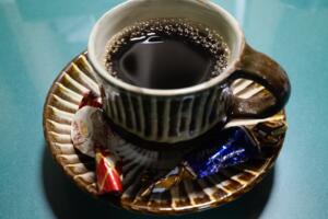 珈琲始めはいつもの安いブレンドにモロゾフのアップルチョコレートを添えて。