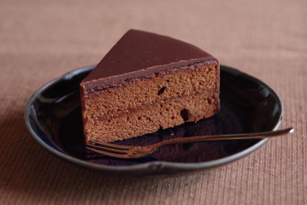 いまの時期限定のザッハトルテ、上側のチョコレートの層が分厚くしっかりしているのが見える。