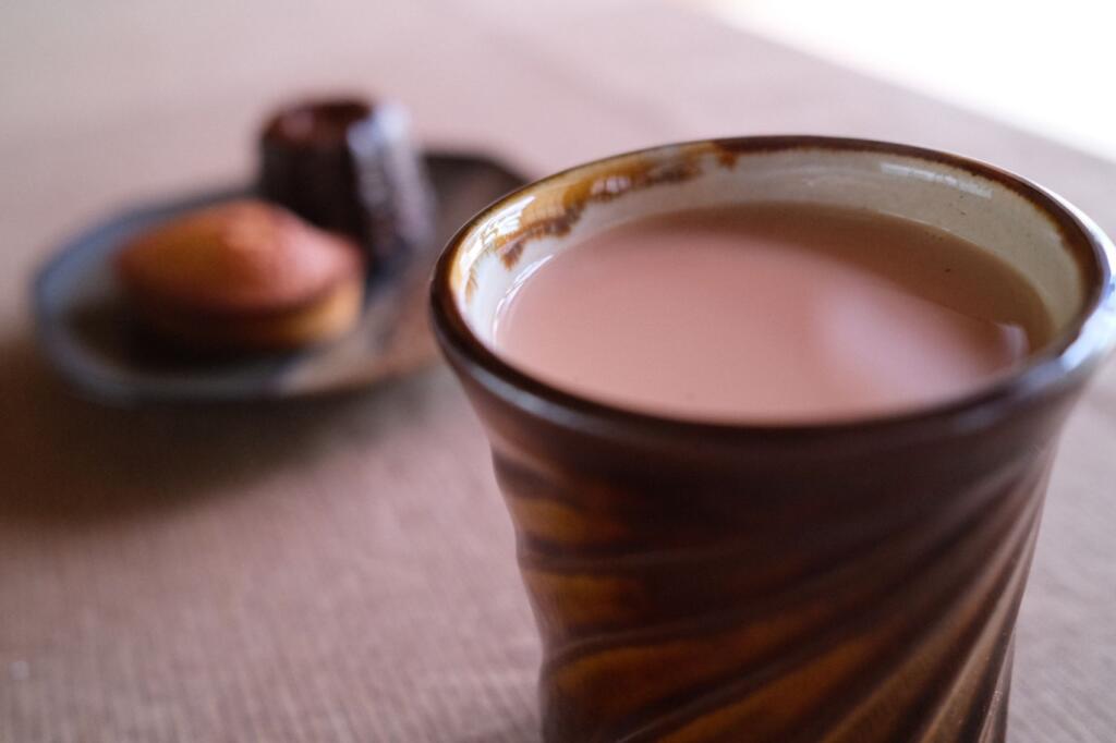 紅茶は今回も青山ティーファクトリー様のもの、これはディンブラのガウラウィラ茶園BOPFを濃いめに出してミルクティーにしたもの。