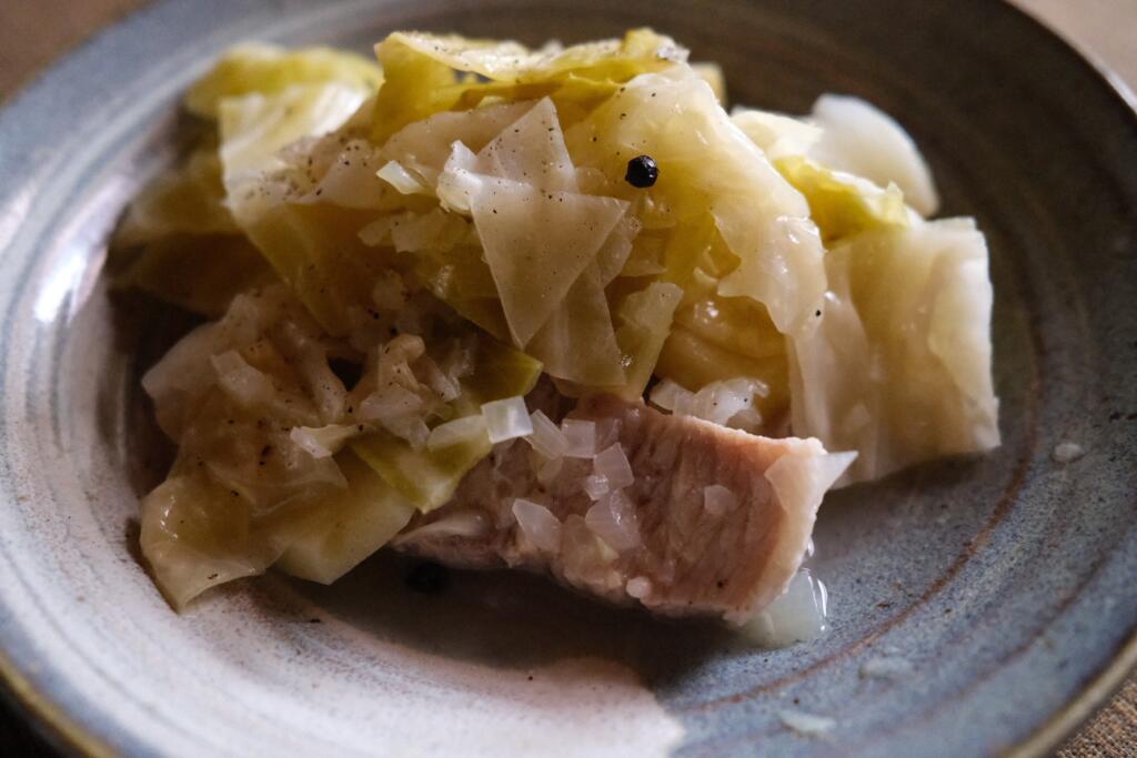 一度茹でこぼして、芋焼酎50mlと水50mlをゼロ活力鍋(赤錘)でシュシュシュと鳴り出してから弱火で30分。